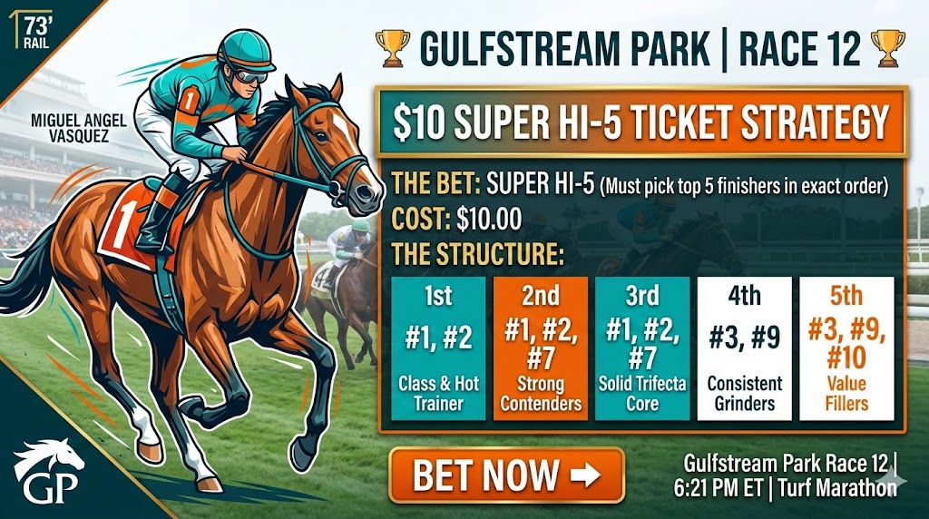 The “nightcap” at Gulfstream is a grueling 12-furlong test that requires both tactical speed and extreme stamina. With a heavy rail setting and a few key scratches, the shape of the race has shifted. Here is your complete deep dive to help you land a winning ticket.