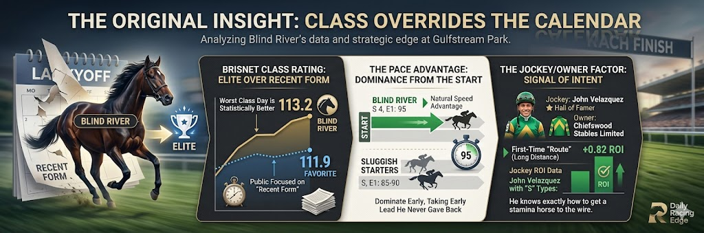 Because the public chased “hyped” debutants like 1 Wrathchild (who faded to 7th), Blind River was entirely overlooked.