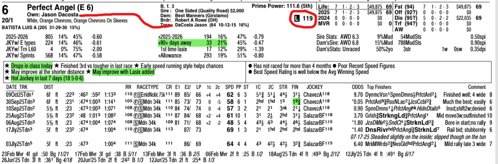 One of the most powerful tools in handicapping is identifying a Key Race. Our winner exited a monster race back on October 9th (#7 Perfect Angel).